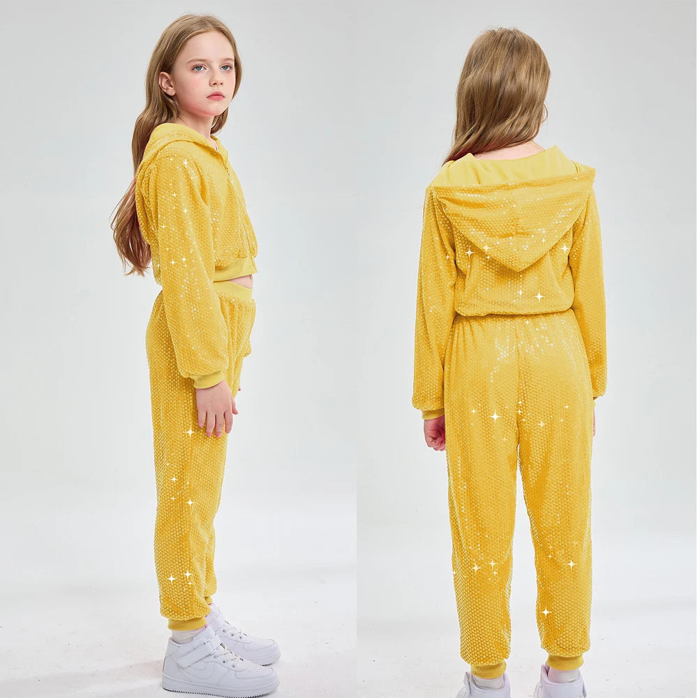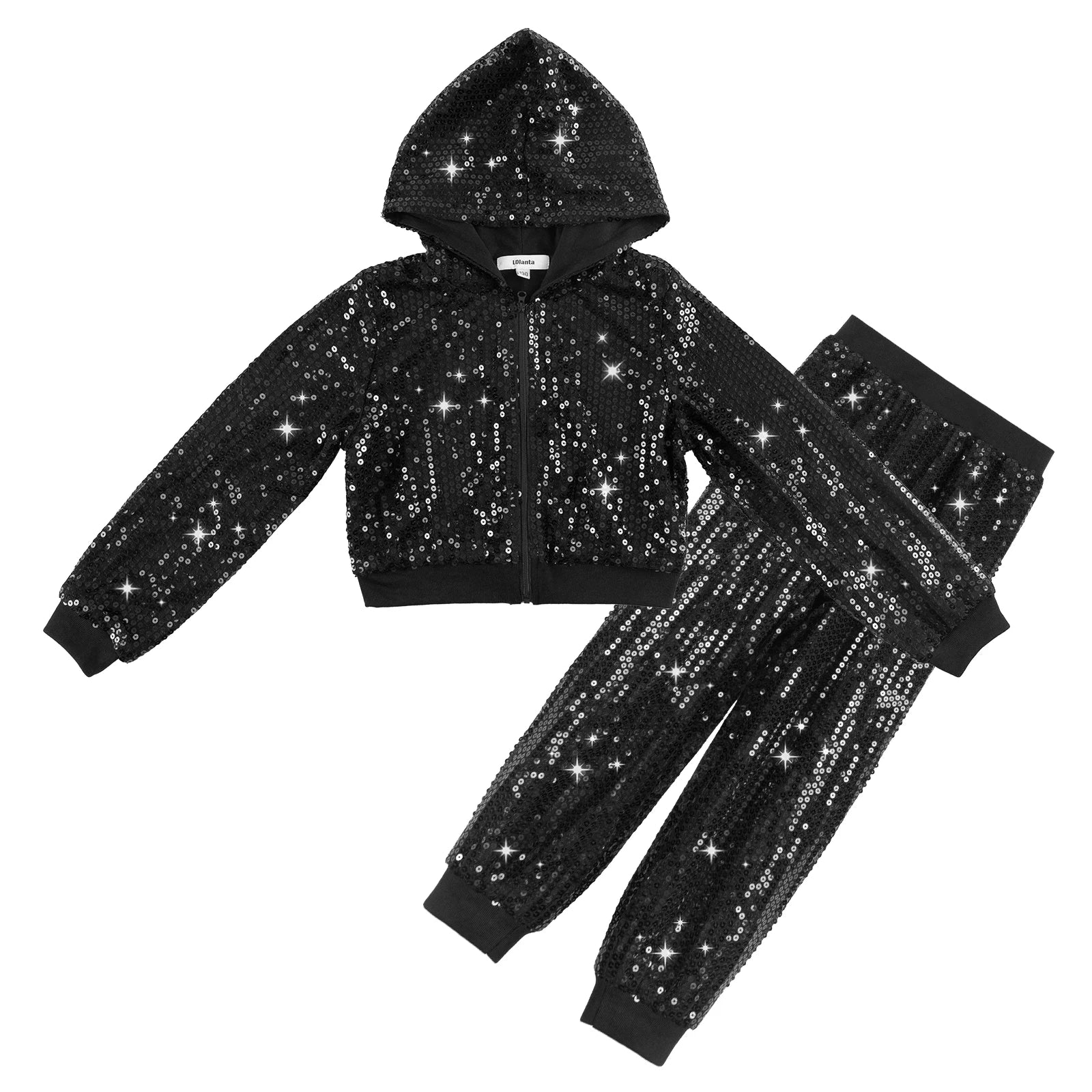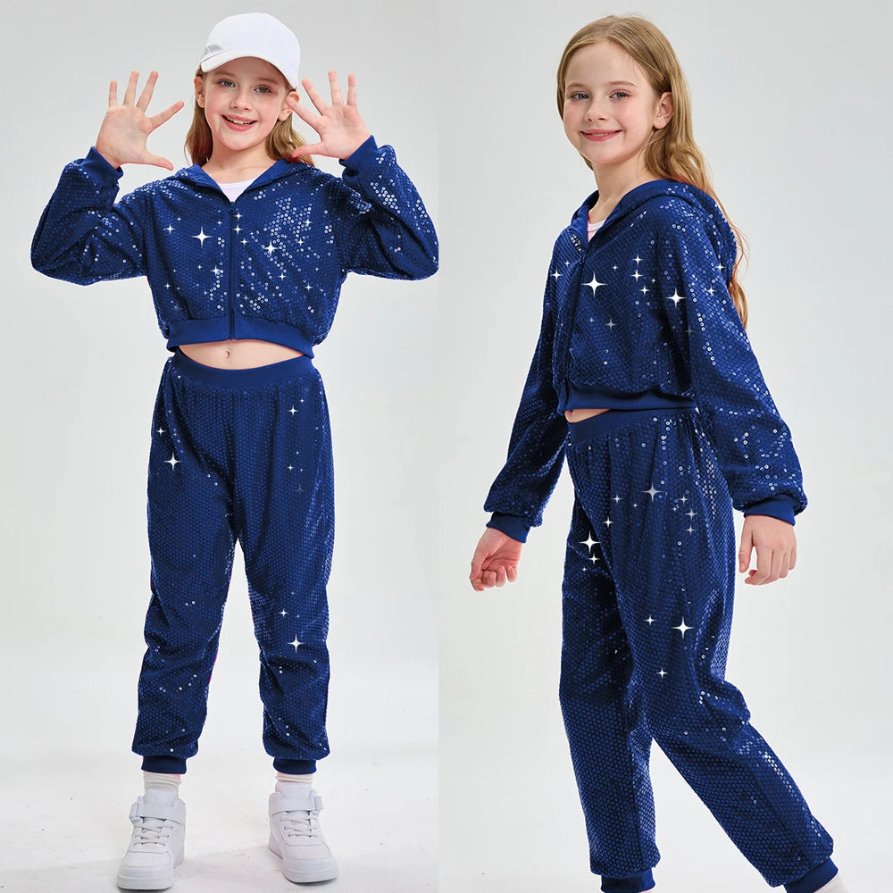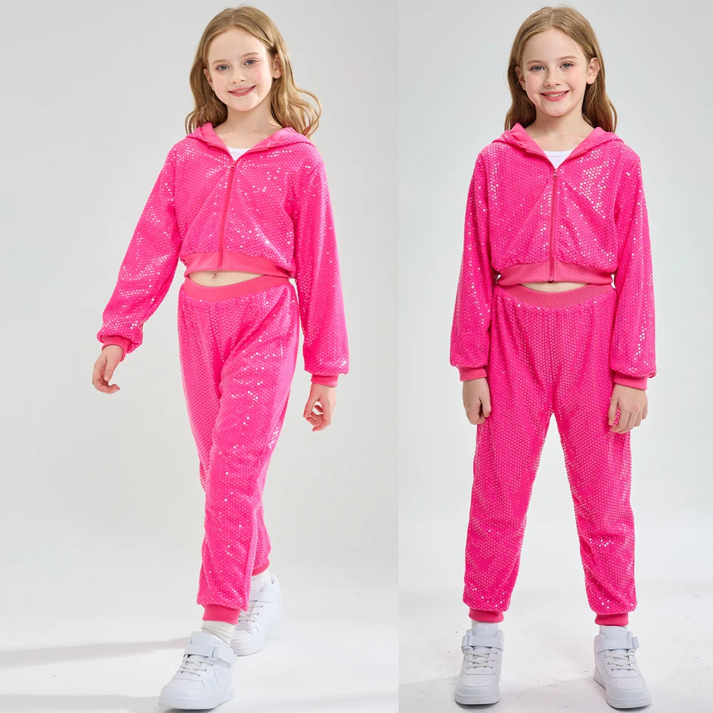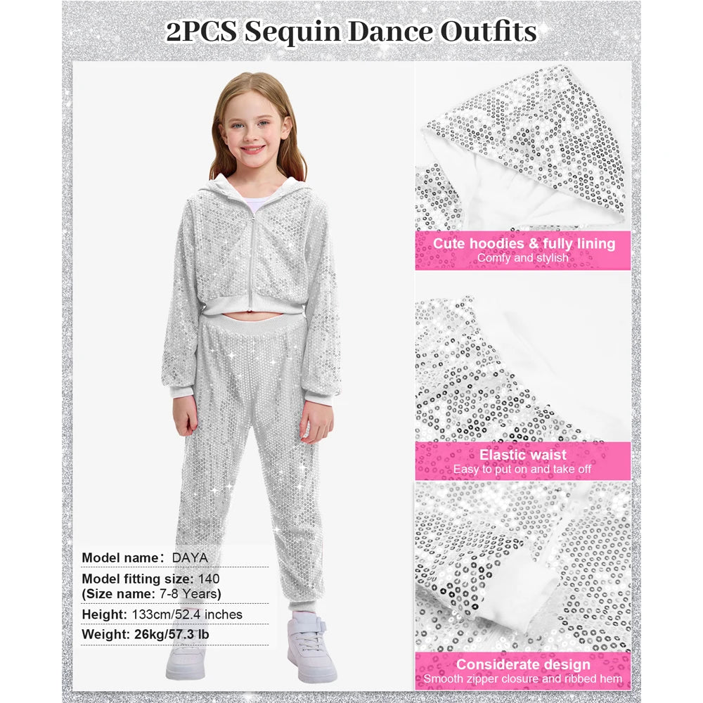 フード付きデザインで動きやすく、お子様も着やすい2点セット💪キラキラのスパンコールがダンスの動きに合わせてキラキラ輝いて、お子様のテンションもアップ⤴️