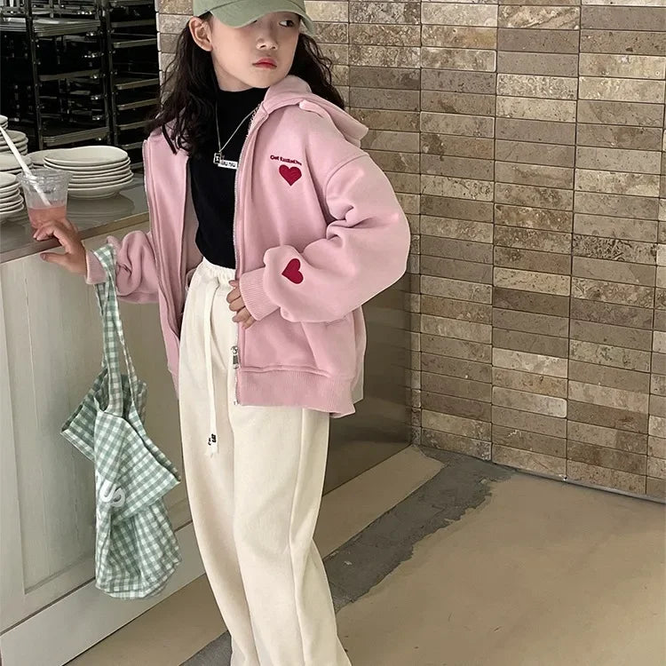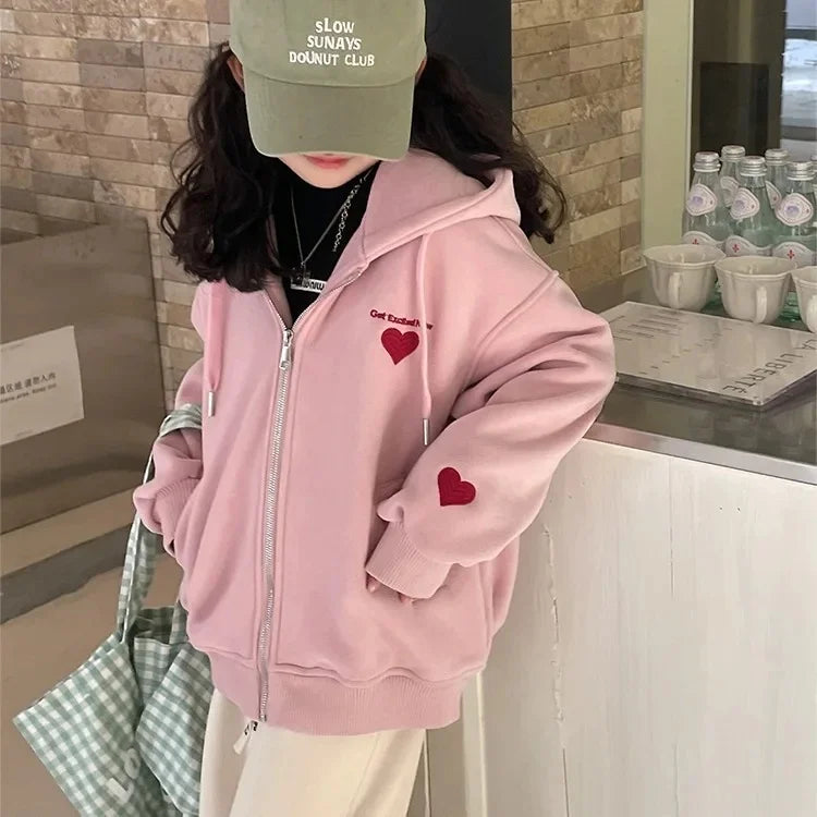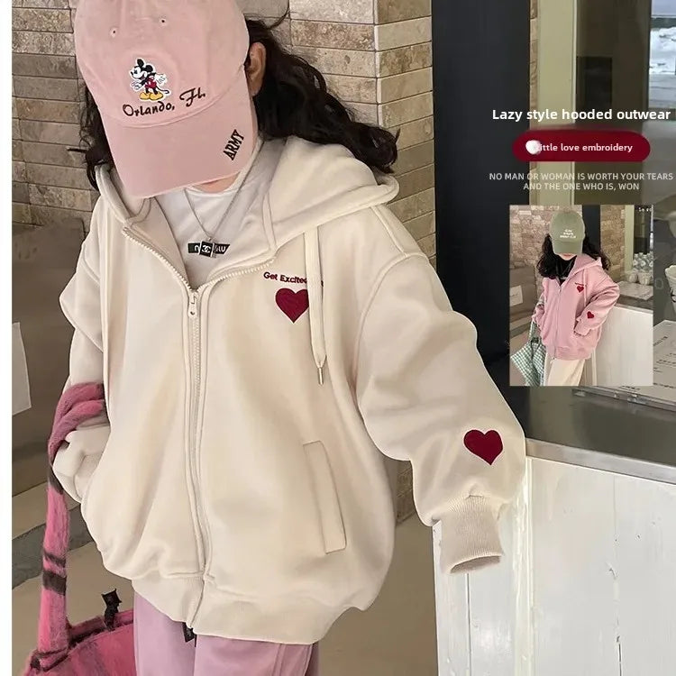 ハート刺繍フード付きジップパーカー