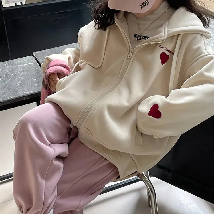 キュートなハート刺繍が可愛い💕ルーズフィットパーカー