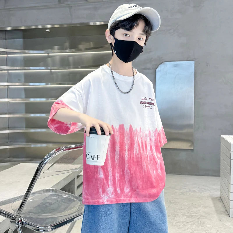 夏のアクティブなお出かけにぴったりの個性的なタイダイ染めTシャツです。白からピンクへのグラデーションが爽やかで、カジュアルながらおしゃれな印象を演出します。