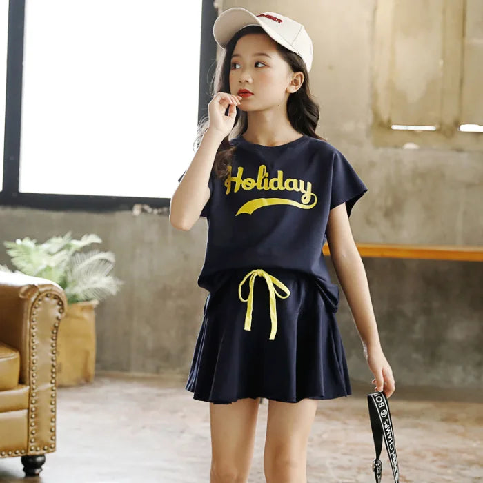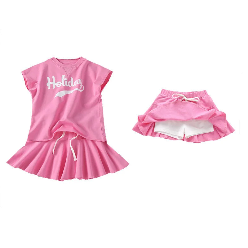 程よくゆとりのあるTシャツとプリーツスカートの組み合わせで、動きやすさバツグン。