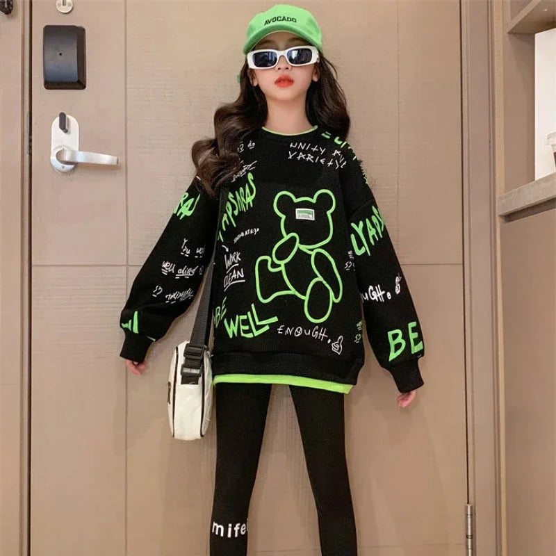 可愛いクマのレタリングプリントで、お子様も気に入ること間違いなし!