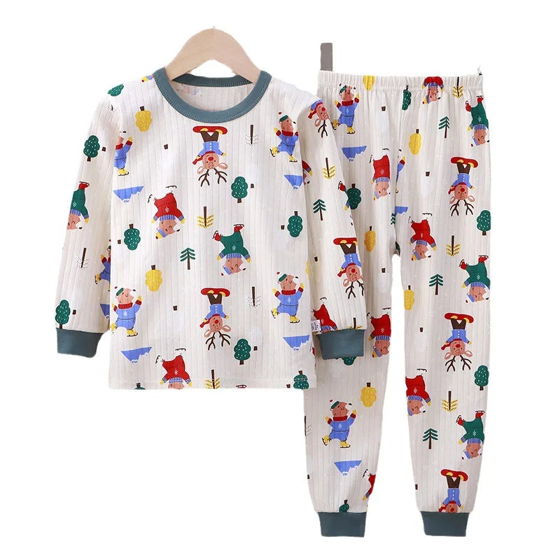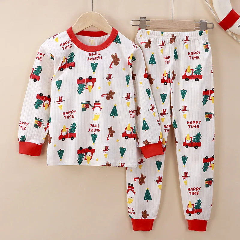 肌にやさしい綿素材で作られた、キッズ用の長袖パジャマセットです😊上下セットだからコーディネートに迷わず、忙しい朝もスムーズに準備できちゃいます!