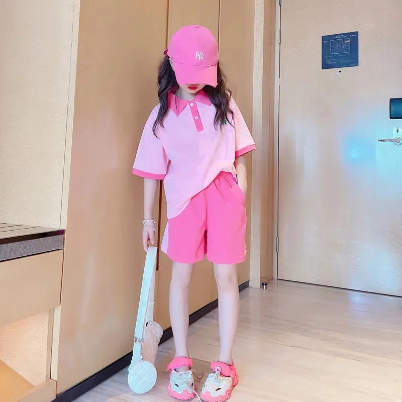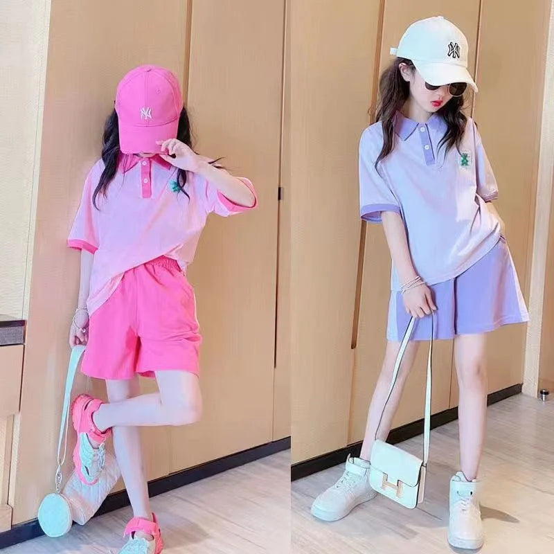 シンプルながらもオシャレな雰囲気漂うポロシャツと、動きやすいショーツの組み合わせ。かわいいワンポイントがアクセントに😊