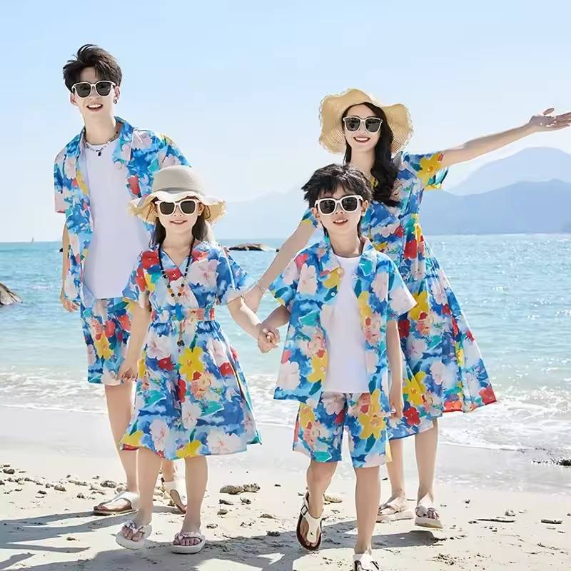 ビビッドな花柄は写真映えも抜群で、リンクコーデに楽しさをプラスします。