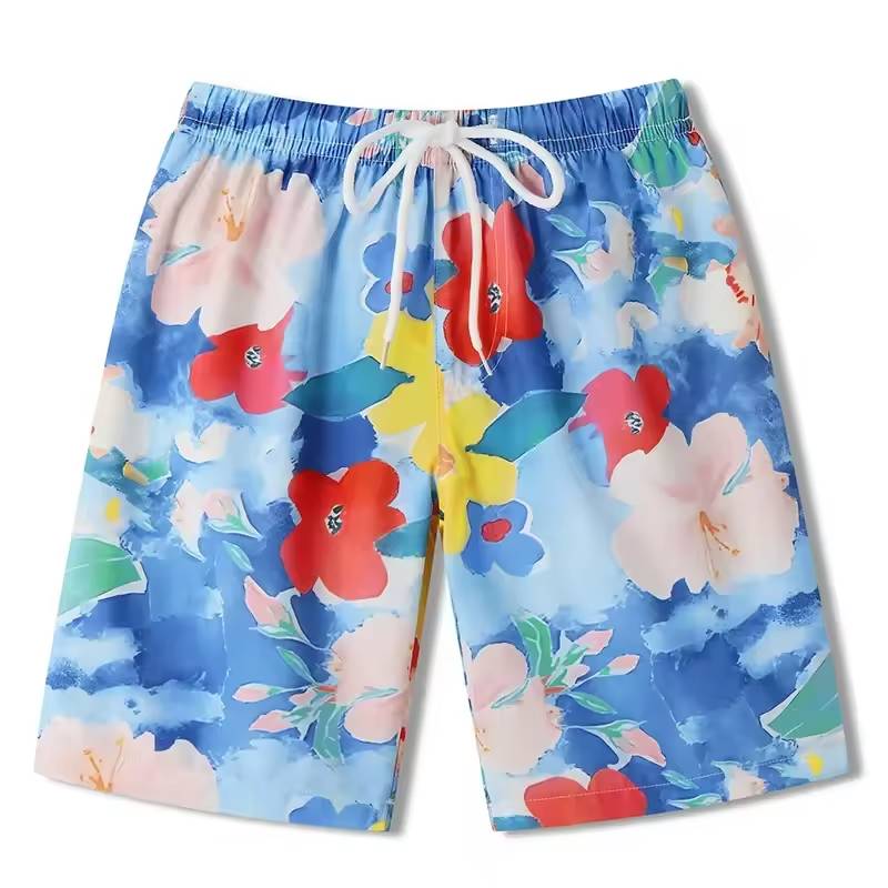 太陽に映えるトロピカル柄ショーツで、夏気分を盛り上げて。