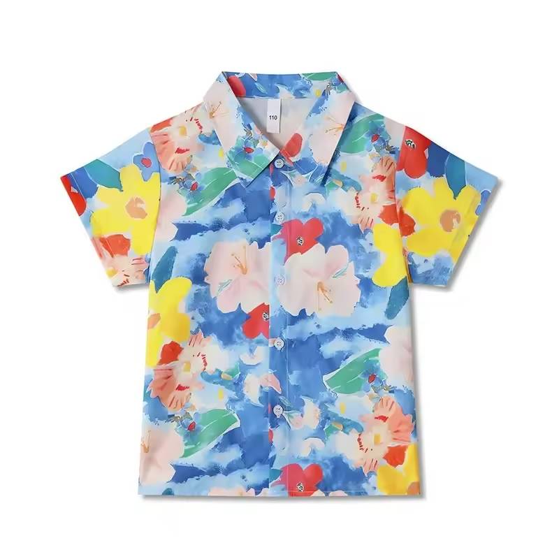 風通しの良い半袖シャツに、トロピカルな花々を散りばめた存在感のあるプリント。柔らかな素材感と前開きデザインで、着脱しやすく、快適!